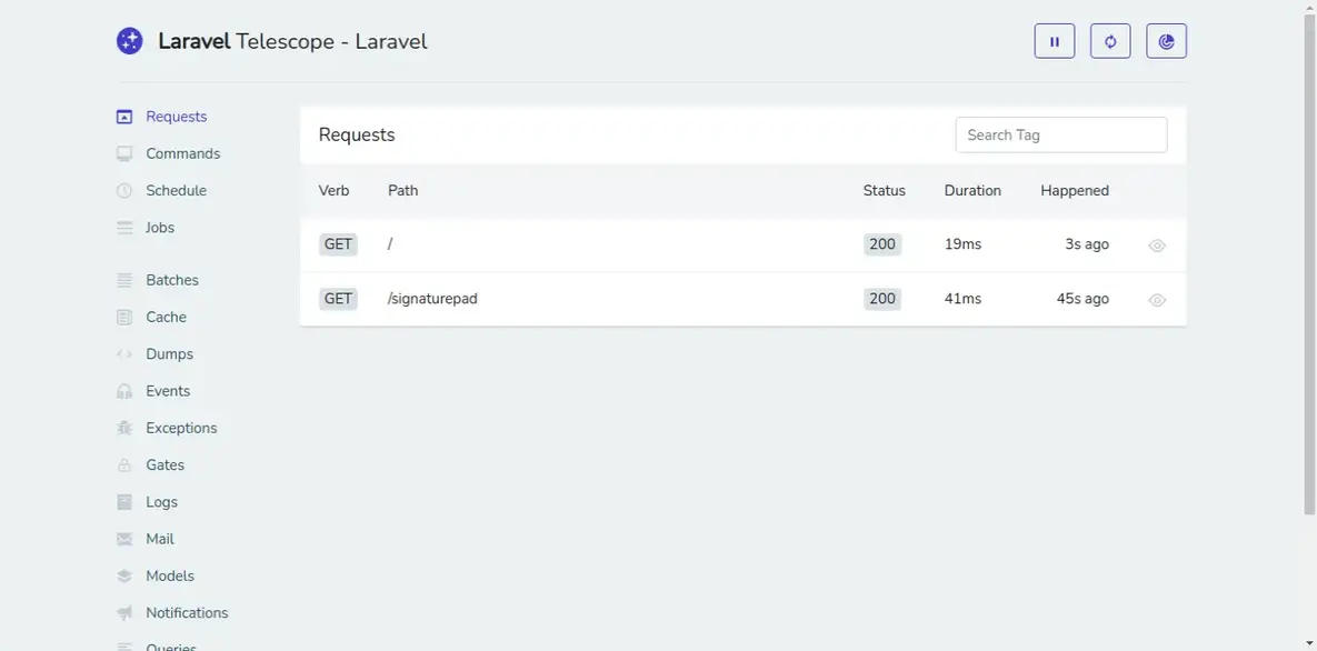 Laravel loyihalarni ishlab chiqayotganingizda sizga zamonaviy yordamchi bo'la oladigan insturmental kutubxonalardan biri bu Telescope. Telescope da siz dasturga kelib tushgan so'rovlar, loglar, xatoliklar(exceptions),MB ga so'rovlar, tasklar va joblarni bajarilish jarayonlari va boshqa kerakli ma'lumotlarni olishingiz mumkin.